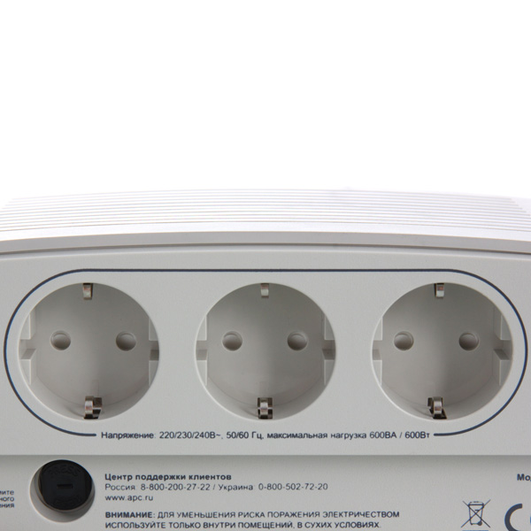 Приземистый корпус этого стабилизатора самый крупный среди участников, но ненамного, хотя мощность у APC в два раза выше. Форма его такова, что сразу понятно, где верх, — как-то по-другому его не поставишь. У прибора три евророзетки — они размещены в горизонтальный ряд на задней панели. Управление осуществляется всего одной клавишей (включение питания), а отображение состояния — тремя индикаторами. Предохранитель не встроен в кнопку питания, а является самостоятельным элементом на задней панели стабилизатора — такой вариант дороже, но надежнее. Отметим и небольшое, но приятное преимущество: кабель питания у данного стабилизатора длиной 2 м, в то время как у Powerсom TCA-1200 — всего 1 м.